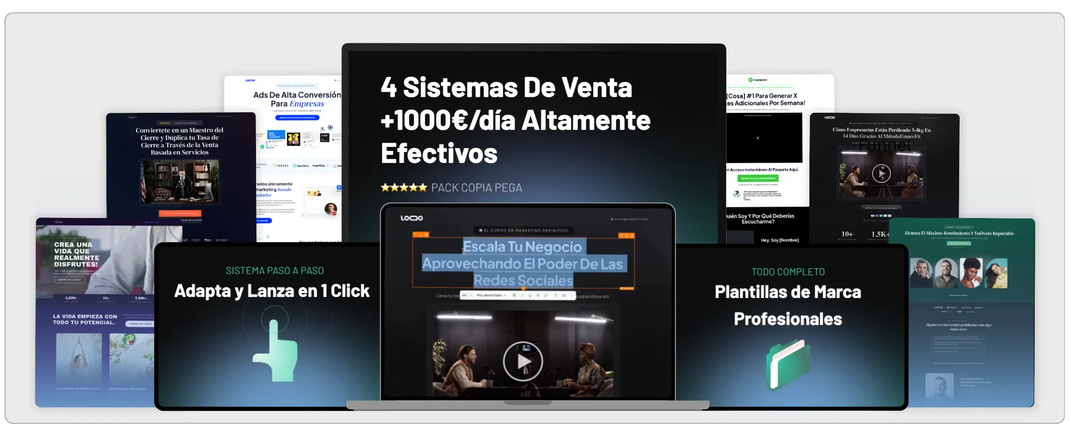 He tomado absolutamente todo lo que utilizo personalmente para generar más de 1000€ al día en automático vendiendo mis propios productos y cursos online, y lo he reunido en un único pack increíblemente poderoso para ti.