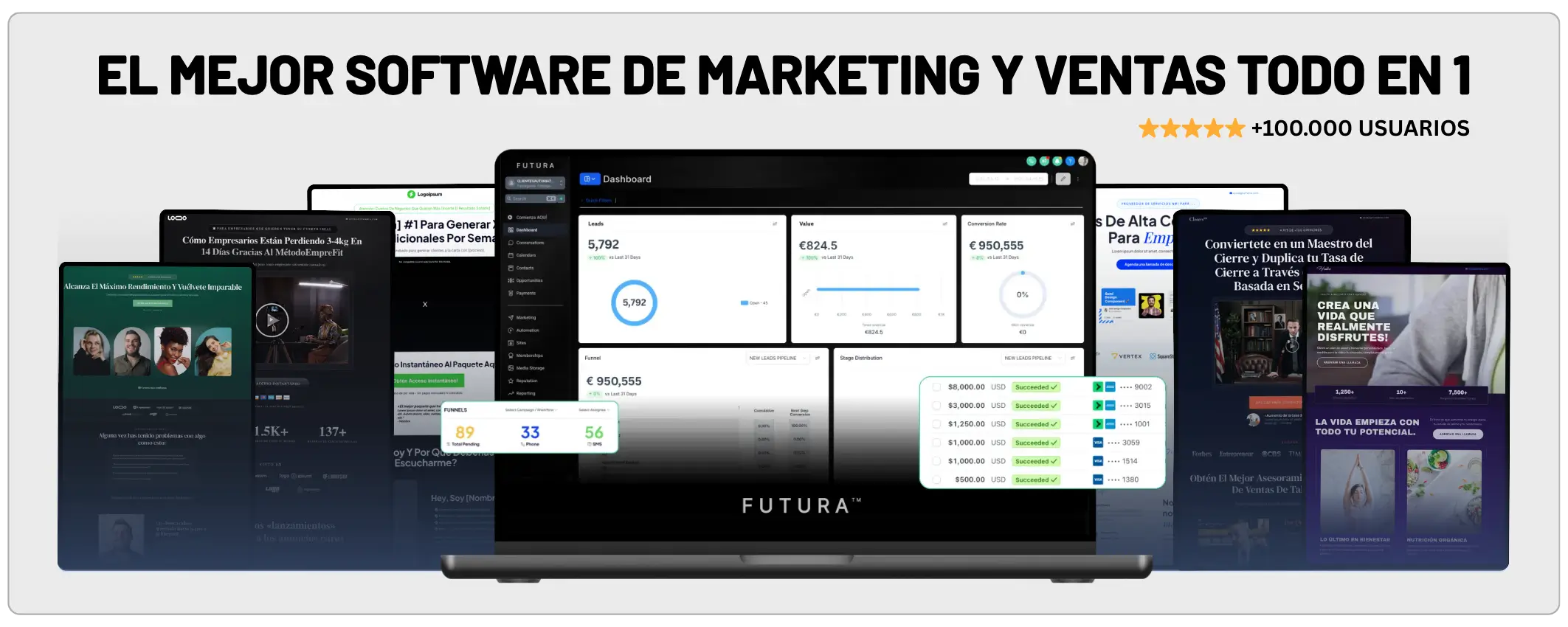 FUTURA es socio estratégico de GoHighLevel (el software más famoso de marketing y ventas con más de 100.000 usuarios activos)... Y normalmente vende a 97€/mes...